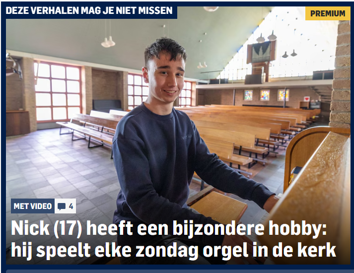 Nick (17) heeft een bijzondere hobby: hij speelt elke zondag orgel in de kerk